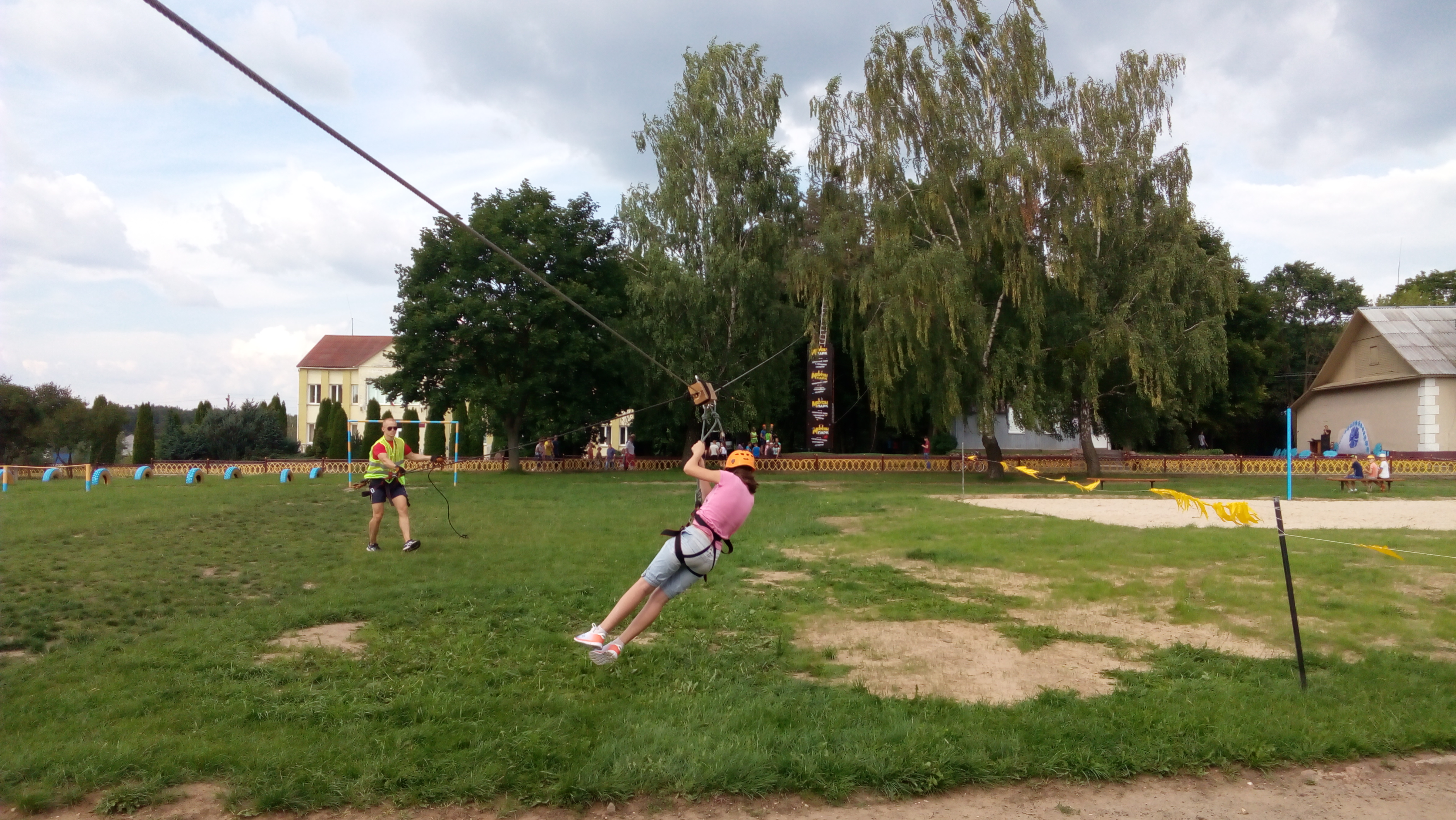 «День приграничья» в п.Гудевичи, где мы предлагали незабываемые и «острые» аттракционы: стометровый троллей (полет над швейцарской долиной на высоте пятиэтажного дома),