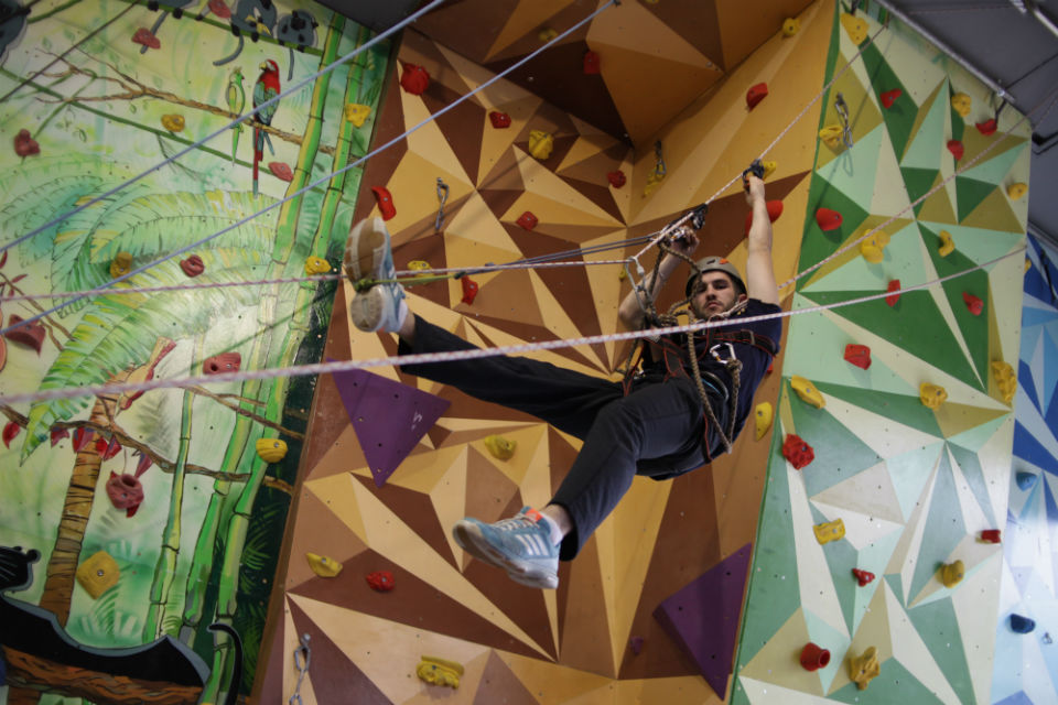 подъем по различного вида скалодромам с последующим съездом на ролике по тросу. Также мы организовывали передвижной веревочный городок для самых маленьких наших посетителей.